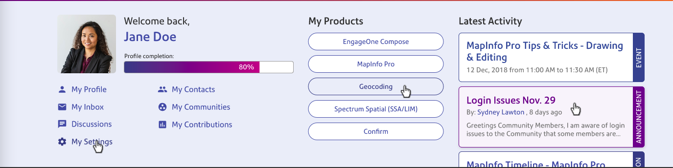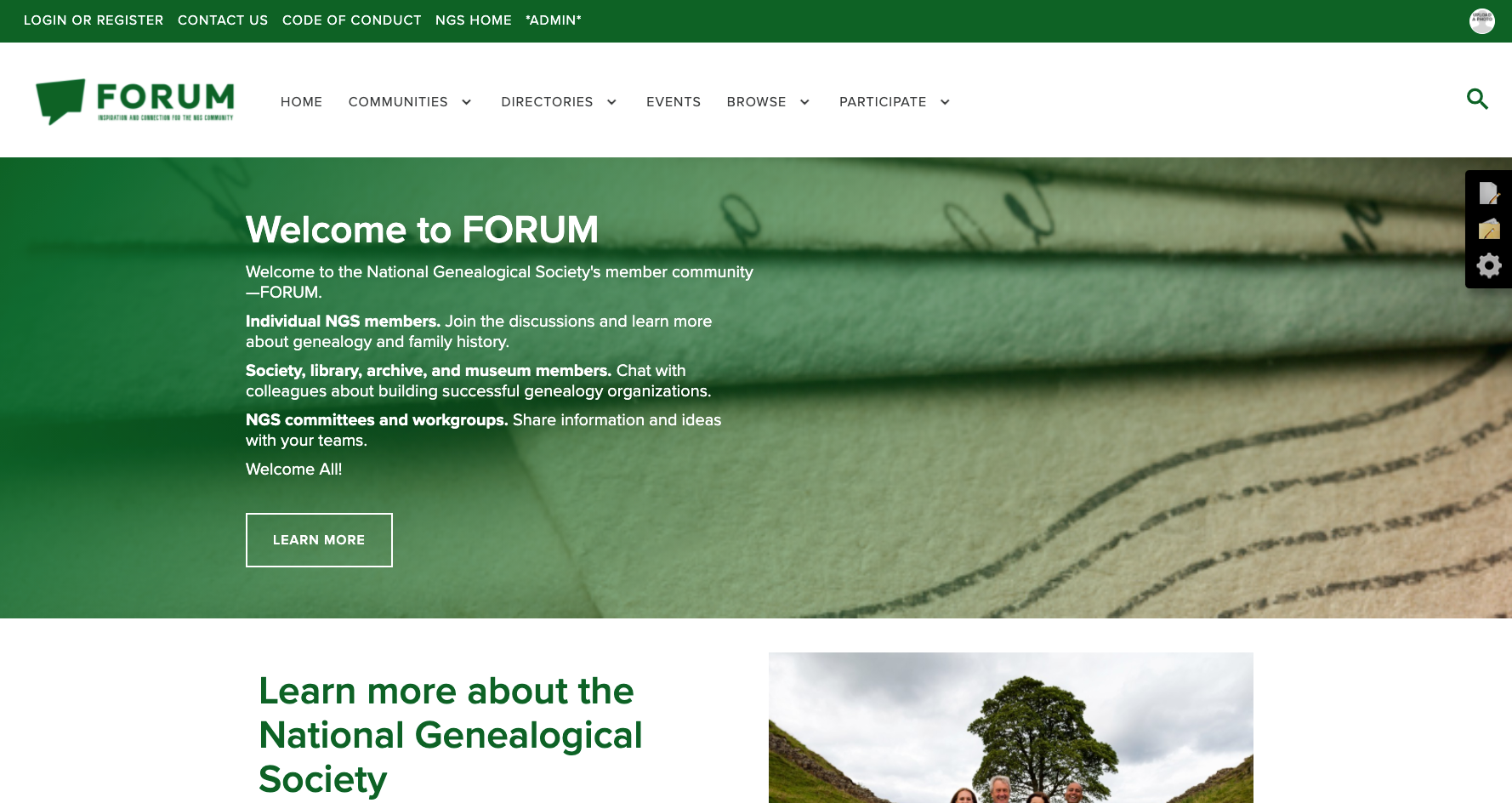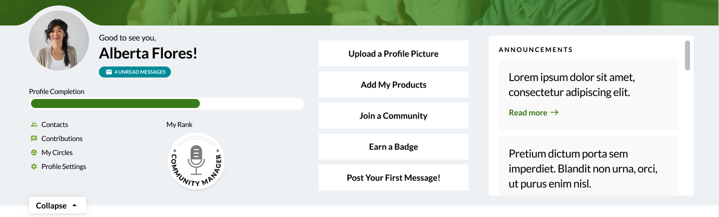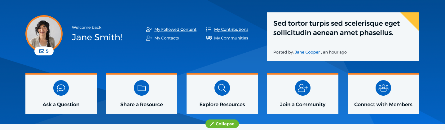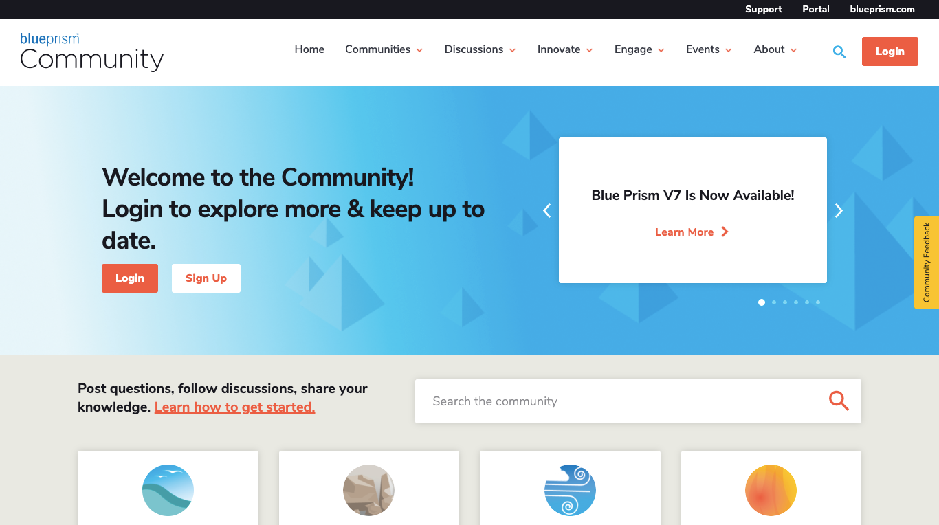 Individual community landing pages have unique components