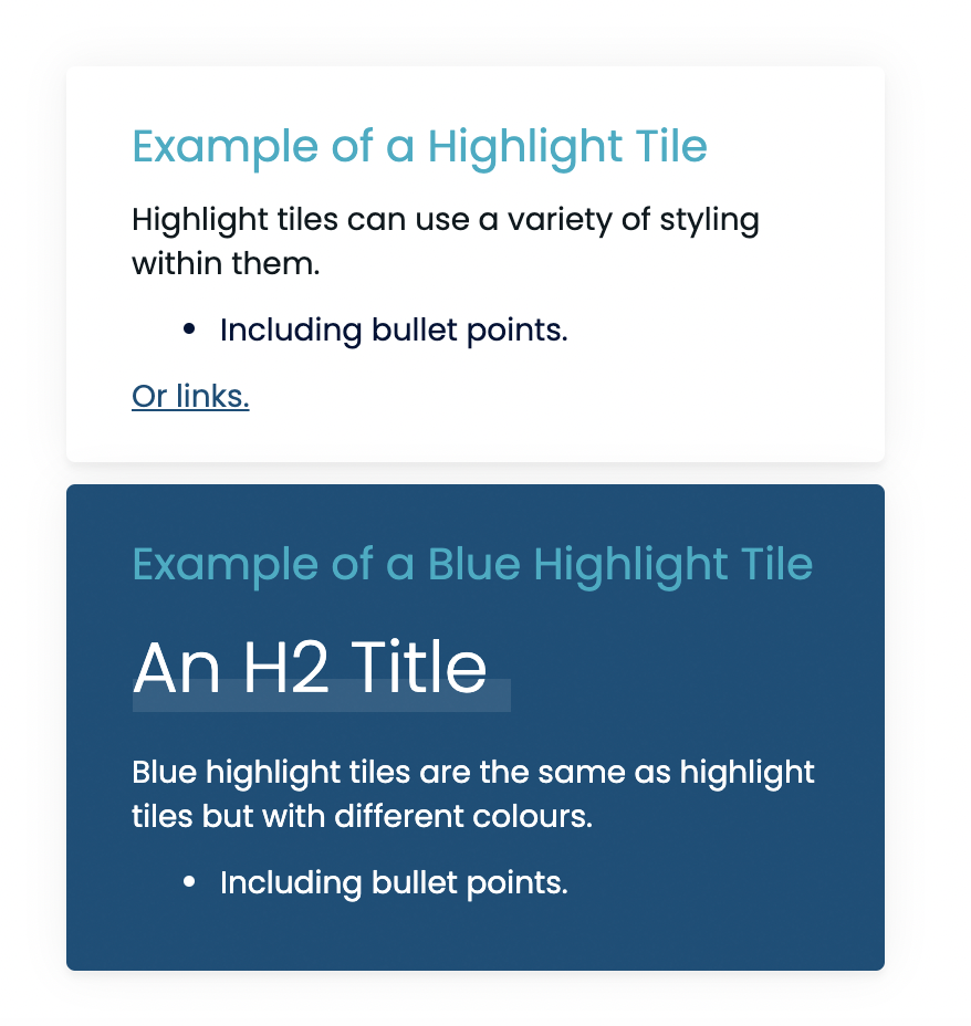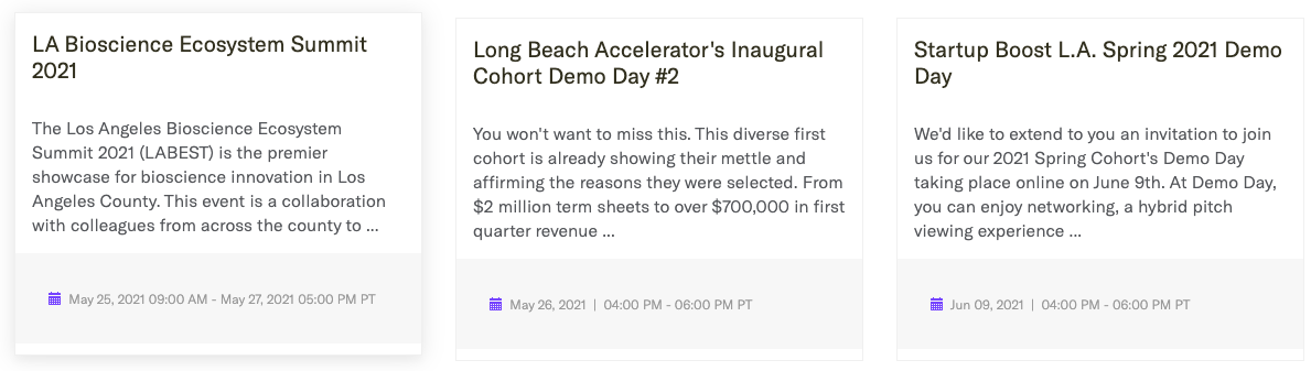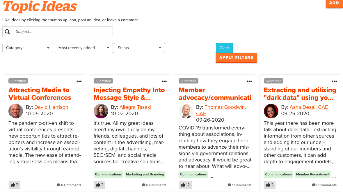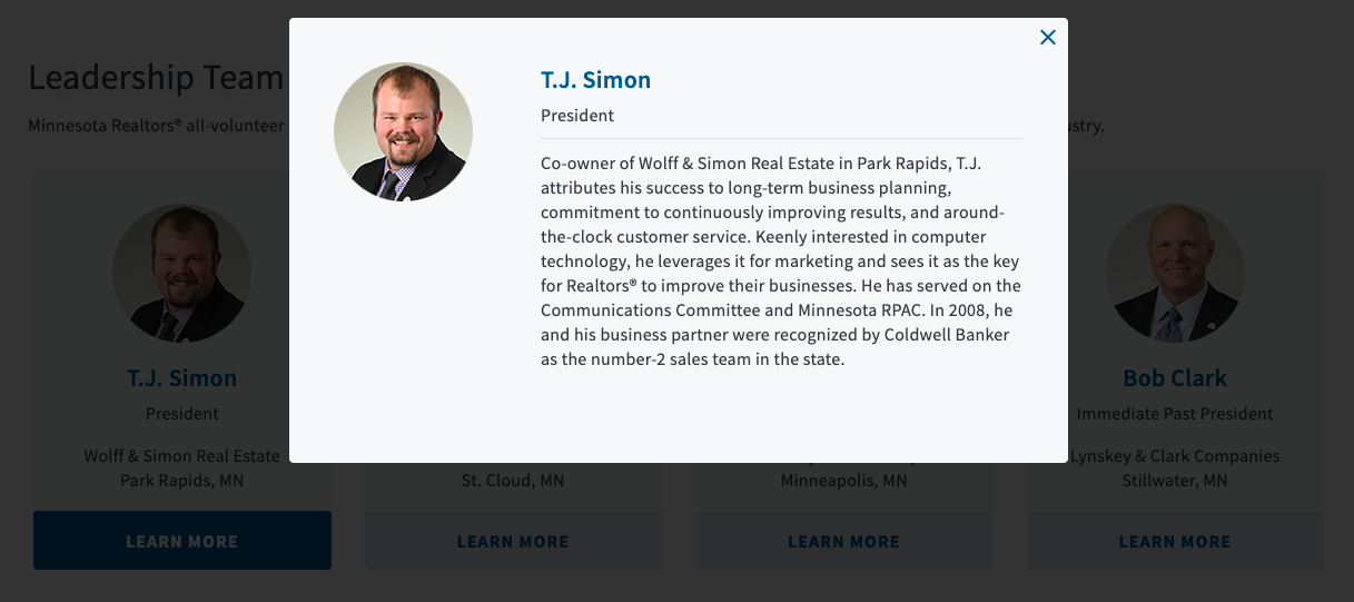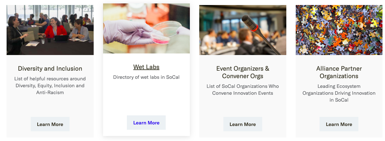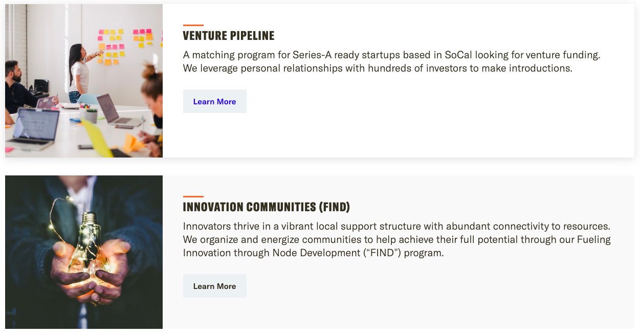 Individual community landing pages have unique components