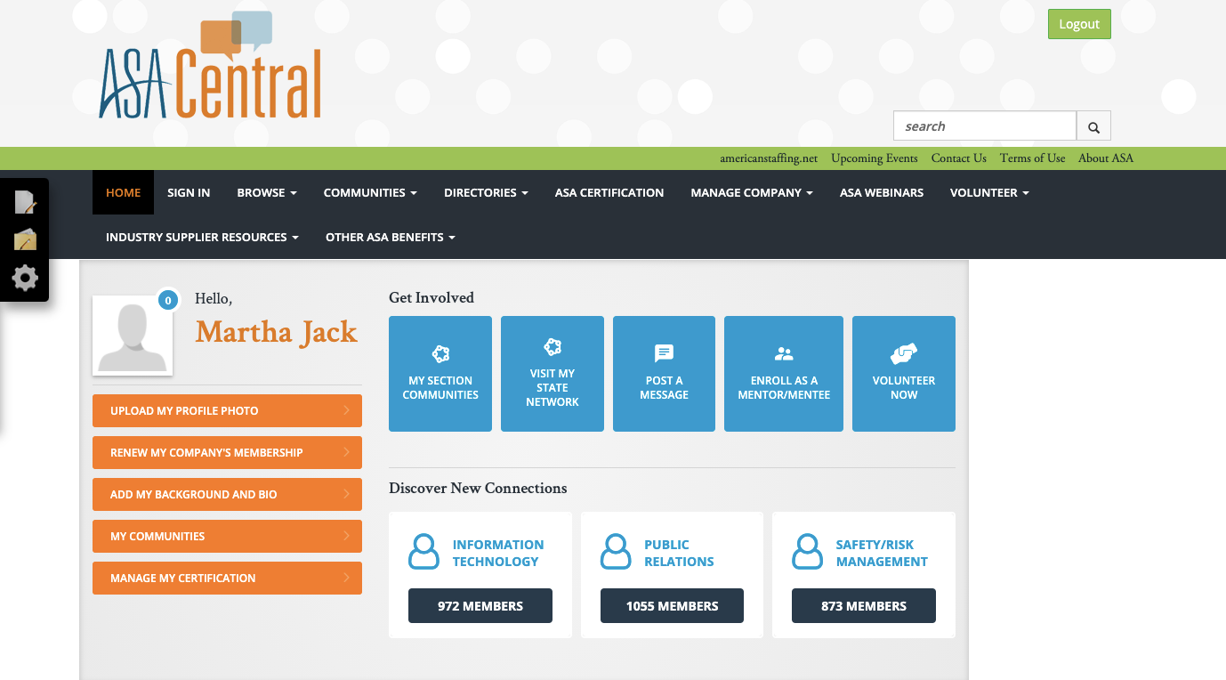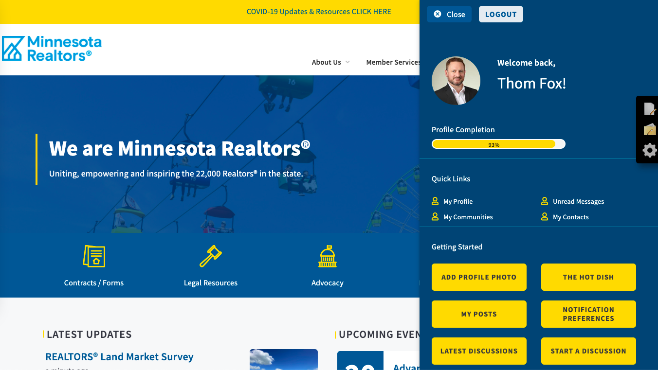 Upon login you are redirected to the member portal